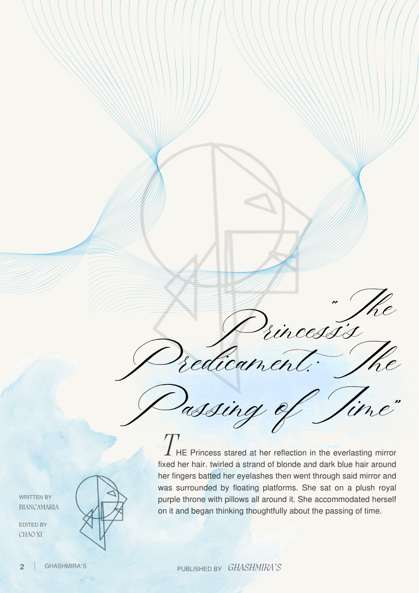 "The Princess Predicament: The Passing of Time", is one of the masterpieces written by Biancamaria, this piece of work reflect her honest thoughts, her skillful imagination, significance of time and dedication to her work. The fantasy of this story is quite different and touching. The story describes the importance of time and expressions. The ...